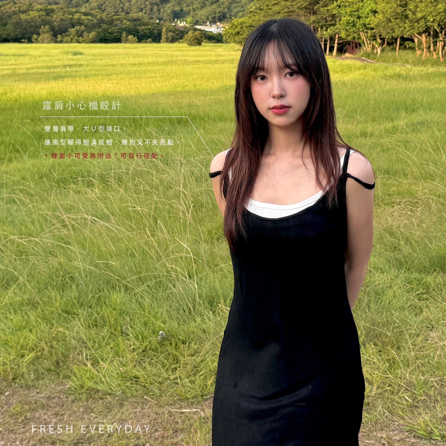 肩寬頻提出設計,大U型領口,