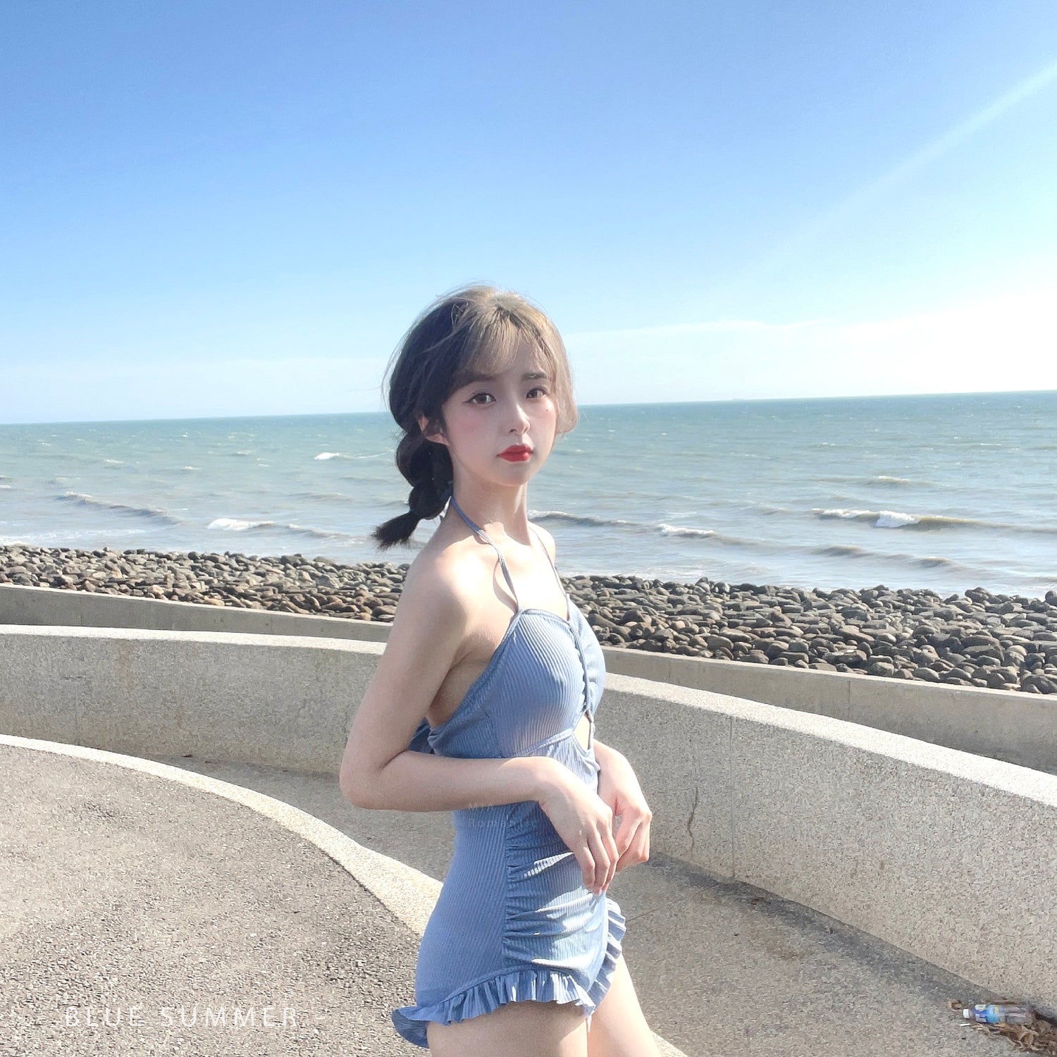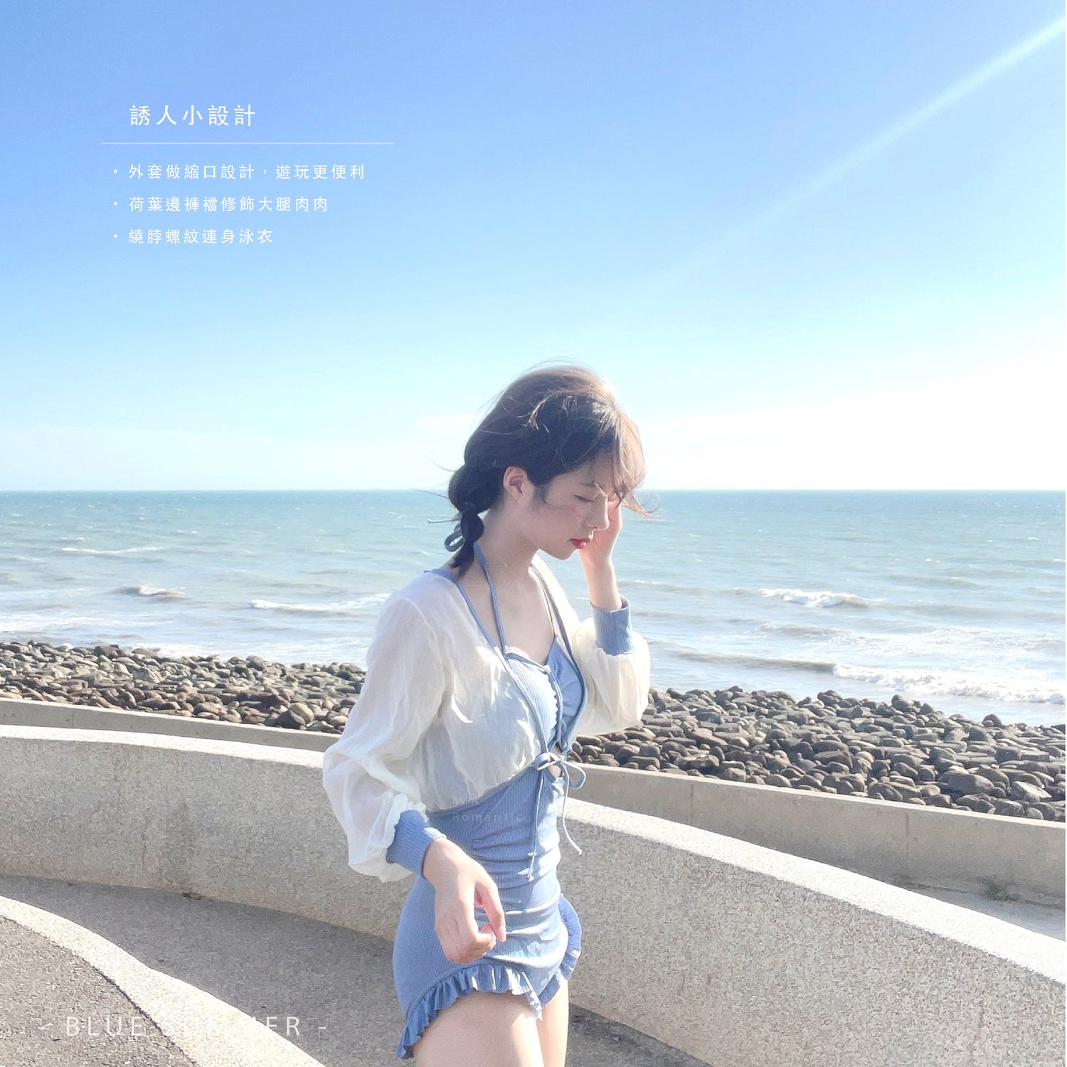 - 繞頸細帶 胸前小心機 下身顯瘦荷葉邊