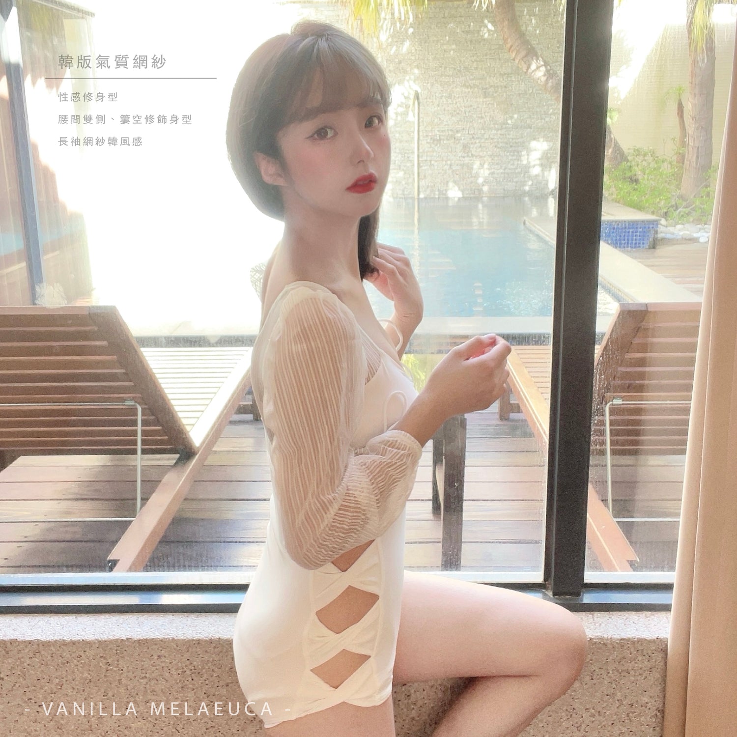 韓版網紗長袖泳裝
